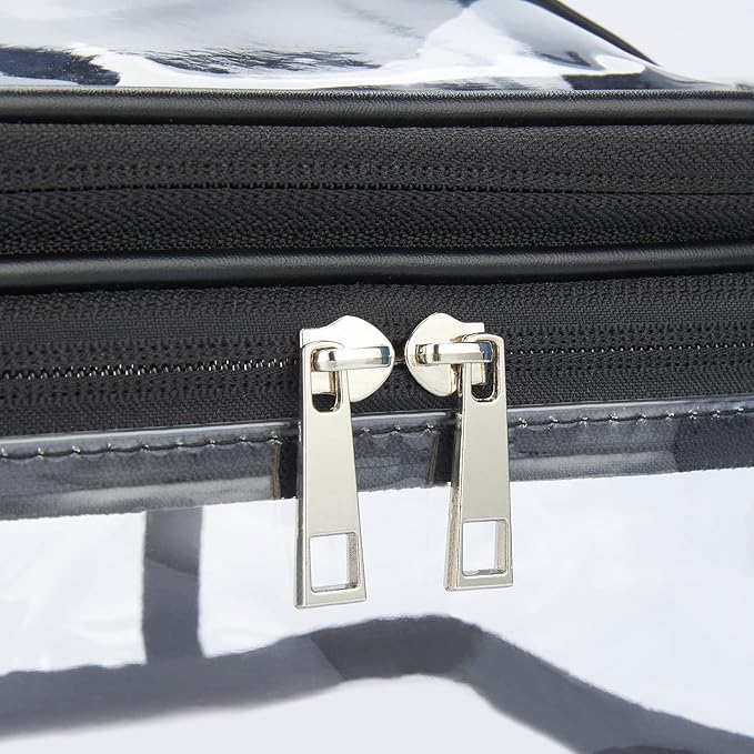 - QUALITY MADE - Made from durable and clear PVC material,Reinforced stitching seam and sturdy double zipper make sure this clear makeup bag can bear long term use without tearing on the seam