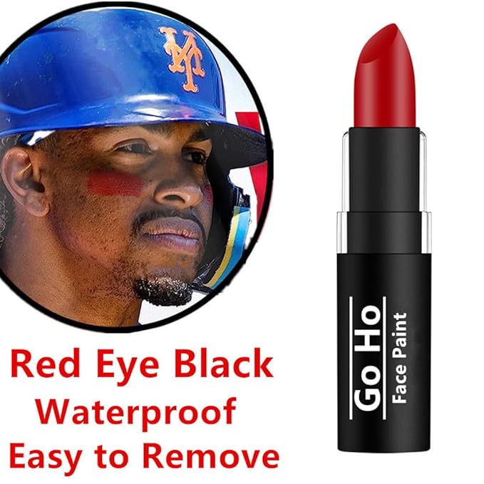 - Red Eye Black Sports/Lipstick For Makeup --- Face & Lip smacking cream blend stick for SFX Makeup & Dress Up.Red eye black for football/baseball/softball.Sweat proof and easy to get off.Great for sports.