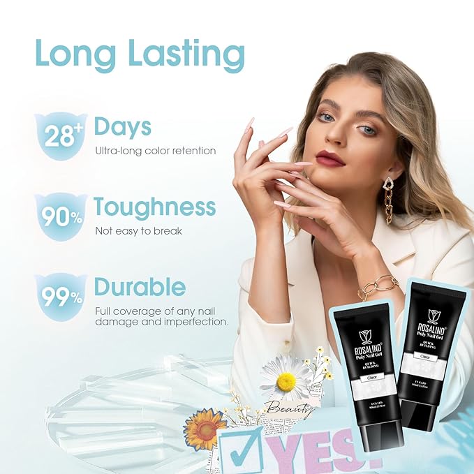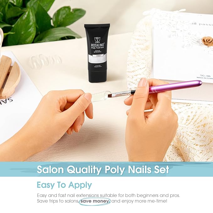 ROSALIND Clear Acrylic Poly Nail Gel 2.7 oz Poly Extension Gel for Nail Art Decoration, Nail Thickening Extension Builder Clear Gel Easy to DIY Use at Home Need UV Lamp