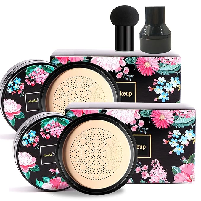 2 Pack Mushroom Head Air Cushion CC Cream BB Cream, Concealer Lasting Nude Makeup Moisturizing Brightening Pigment CC Liquid Foundation Ivory