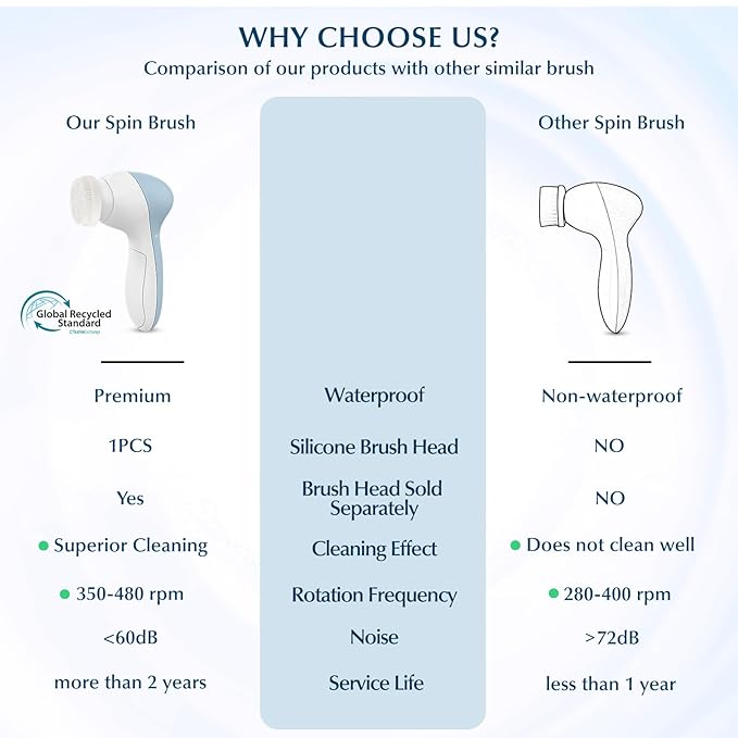 COSLUS Facial Cleansing Brush Silicone Face Scrubber: 7 in 1 FBS-D Electric Exfoliating Rotating Massage Device Waterproof Deep Cleaning Exfoliation Spa Machine - Electronic Skin Care Wash System