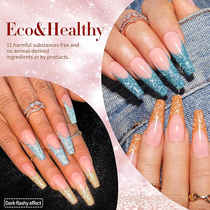 - PACKAGE CONTENTS:6 Bottles 7ml reflective gel polish.In flash they are reflective and out of flash depending on the lights,the lights reflect and show like a billion tiny stars and it looks so cool! Delicately balanced with a precise touch of holographic for some extra personality in the sun and light!Two charming effect natural light normal effect and flashing disco Effect.Not only suitable for daily life but also for parties attractive and different effects will surprise you.