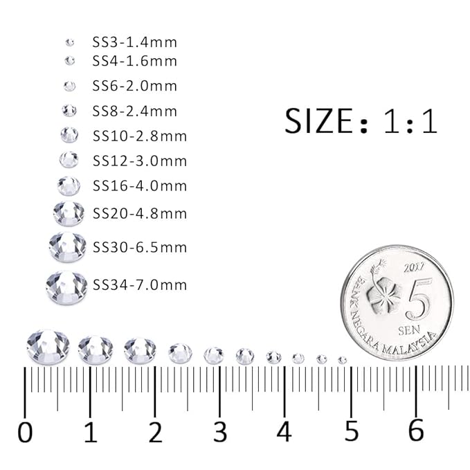 About This Different Sizes Available:These rhinestones for crafts come in a wide range of sizes (1.6mm, 2mm, 2.4mm, 2.8mm, 3mm,... Read more