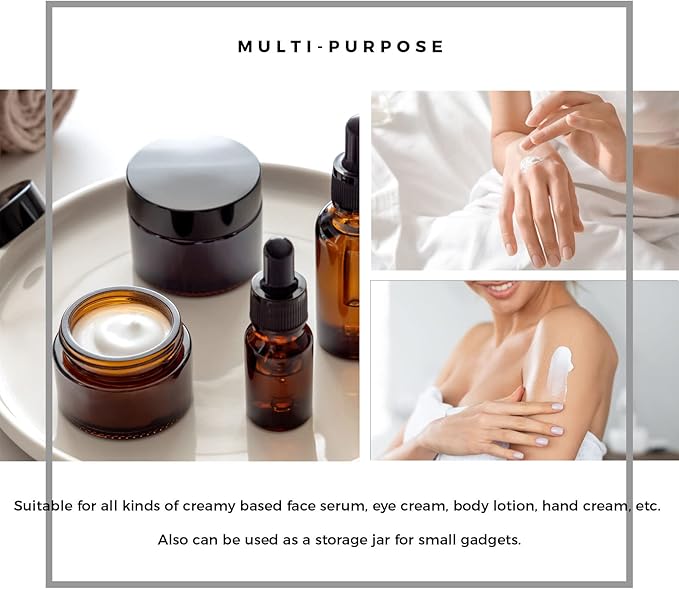 - Multipurpose: Glass jars can be used to store a variety of items, such as eye creams, lotions, creams, ointments, balms, bath salts, etc. It can also be used for storing small craft supplies, sewing supplies, small office materials, etc