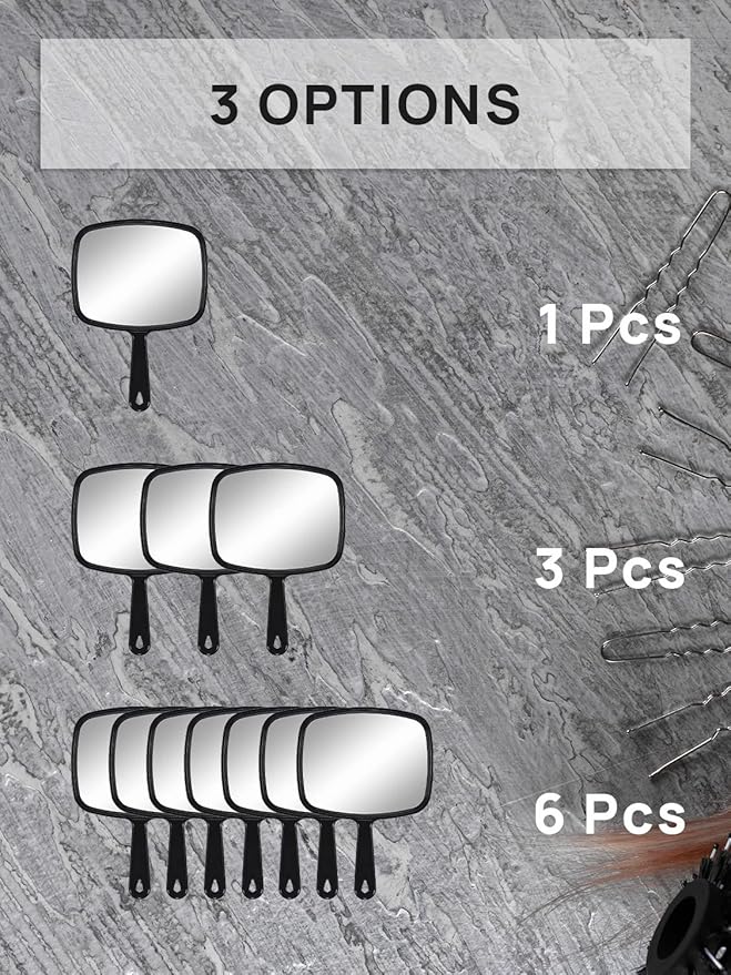 OMIRO Hand Mirror, All Black Handheld Mirror with Handle, 6.6" W x 9.3" L, Pack of 3