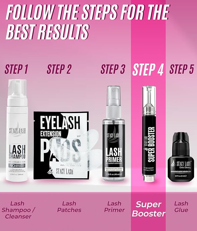 STACY LASH Super Booster for Eyelash Extensions / 0.50fl. oz. / 15ml / Eyelash Primer/Accelerated Lash Bond/Lash Extension Glue Activator/Professional Use/Lash Tech Supplies/for Low Humidity
