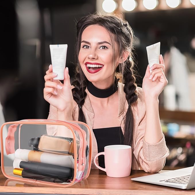 Weewooday 12 Pieces Clear Makeup Bags Cosmetic Storage Bags PVC Zipper Pouches Travel Waterproof Makeup Plastic Case for Women Organizing Toiletries Traveling Bathroom(Medium,Pink)
