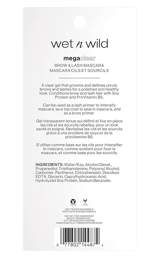 wet n wild Mega Clear Brow & Lash Mascara - Sculpts Brows, Defines Lashes, Conditioning with Soy Protein & ProVitamin B5, Primer & Top Coat, Cruelty-Free & Vegan - Clear