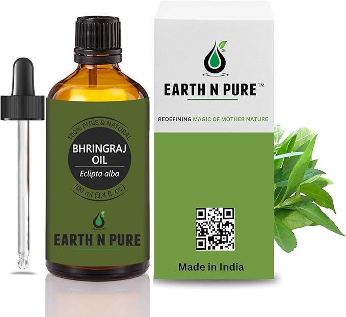 Earth N Pure Bhringraj Oil Natural & Therapeutic Grade for Hair Growth with Glass Dropper – 100 ml