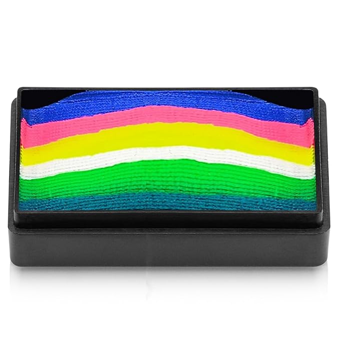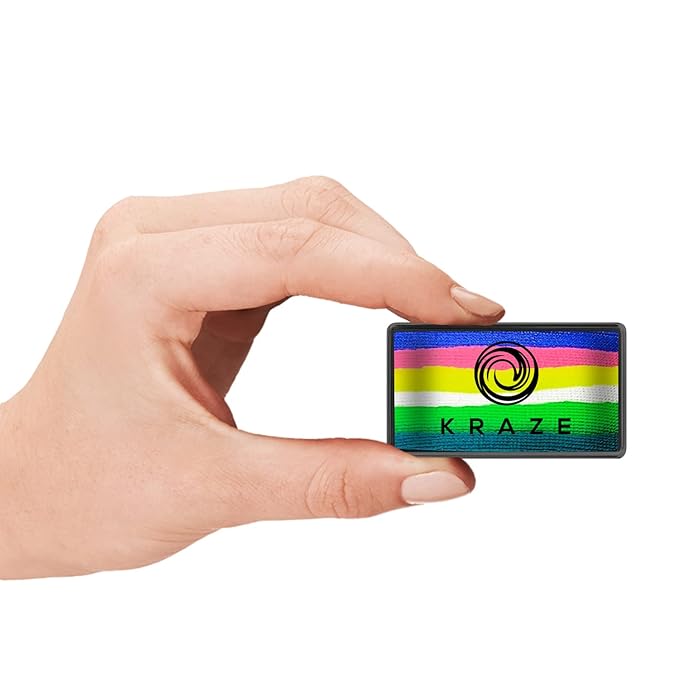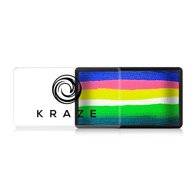 - UNIQUE DOMED SHAPE FOR LESS WASTE & MORE CONTROL: Kraze FX Domed Neon 23-Stroke Cake is designed with a raised center that solves the common issues of traditional split cakes. The innovative dome shape prevents the center from wearing out too quickly, helps load brushes faster, reduces product waste, and gives artists better control. Combined with a creamy, wax-based formula and bold neon colors, it's perfect for creating fast, vibrant face and body art at events, parties, and festivals.