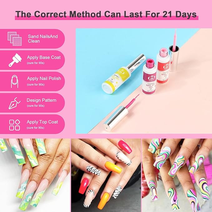 GOICC Nail Art Polish Set Gel Liner Kit For Nail Design Polish Paint For Nail 12 Colors Black White Gel Nail Polish Soak off Curing Requires 8ml with Thin Nail Art Brush