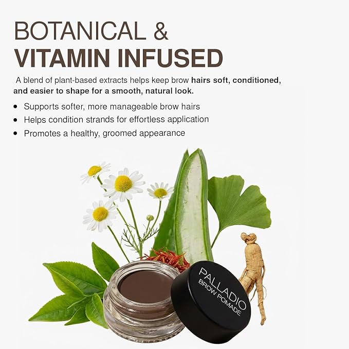 Palladio Brow Pomade Waterproof, 24 Hour Wear, Smudge Proof and Sweat Resistant Formula, Super Creamy Formula Glides on And Helps to Fill in Brows for a Dramatic, Defined, Flawless Look (Medium Brown)