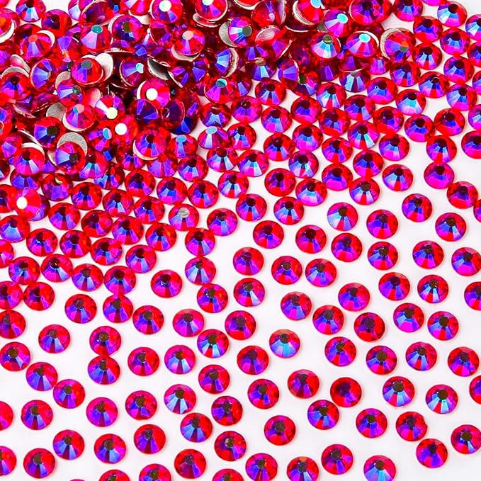1440Pcs Red Ab Crystal Rhinestones,Glass Flatback Rhinestones Gemstones for Nail Face Makeup Art Crafts Clothes Decoration -(SS16,4.0mm,Red Ab)