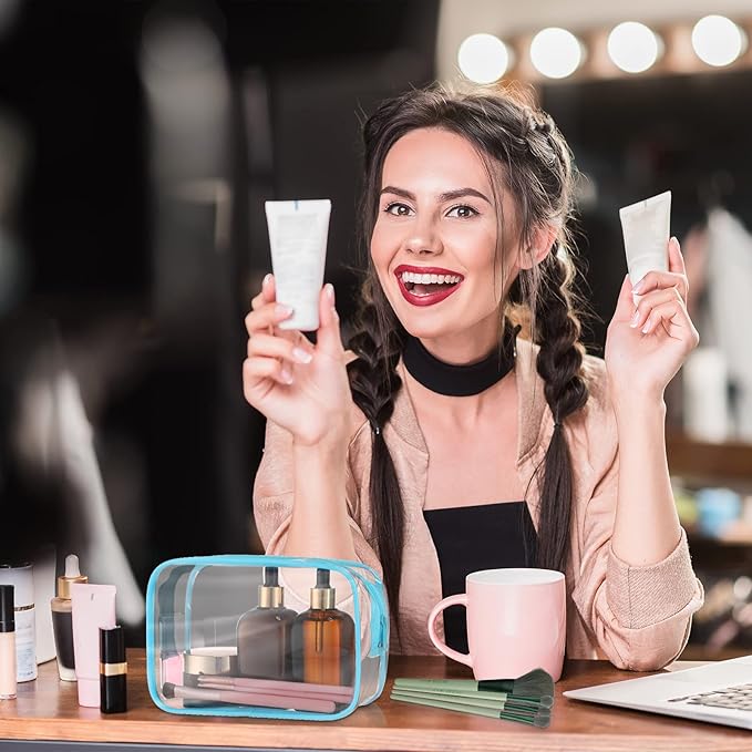 Weewooday 12 Pieces Clear Makeup Bags Cosmetic Storage Bags PVC Zipper Pouches Travel Waterproof Makeup Plastic Case for Women Organizing Toiletries Traveling Bathroom(Medium,Blue)