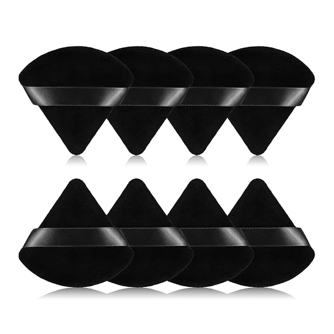 8Pcs of Triangular Powder Puff Makeup Sponges, Made of Super-soft Velvet, Designed for Contouring, Eye, and Corner, Beauty Blender Foundation Mixing Container.(Black)