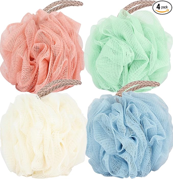 Fu Store Loofah Sponge 60g Shower Loofahs 4 Colors Bath Sponges Mesh Balls for Body Scrubber Exfoliator Wash Back Scrubber Bathroom Men Women - 4 Pack Scrubbers Cleaning Bathing Accessories