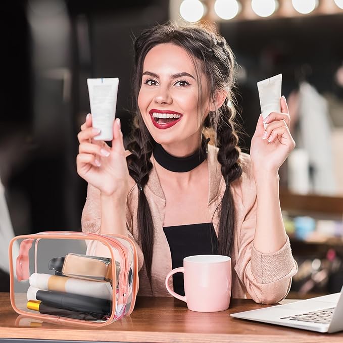 Weewooday 12 Pieces Clear Makeup Bags Cosmetic Storage Bags PVC Zipper Pouches Travel Waterproof Makeup Plastic Case for Women Organizing Toiletries Traveling Bathroom(Small,Pink)