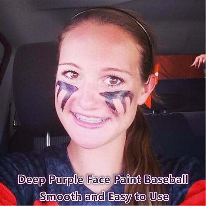 - Ideal for any Halloween Makeup/Eye Black Stick Baseball Purple--- Softball/Baseball Face Paint Stick Purple. This stick is Rotation Design ,lightweight, easy to carry,and smooth to Apply.Great for Halloween FX makeup for Goths, vampires, clowns, mimes, zombies, cosplay, theatrical, stage, act.