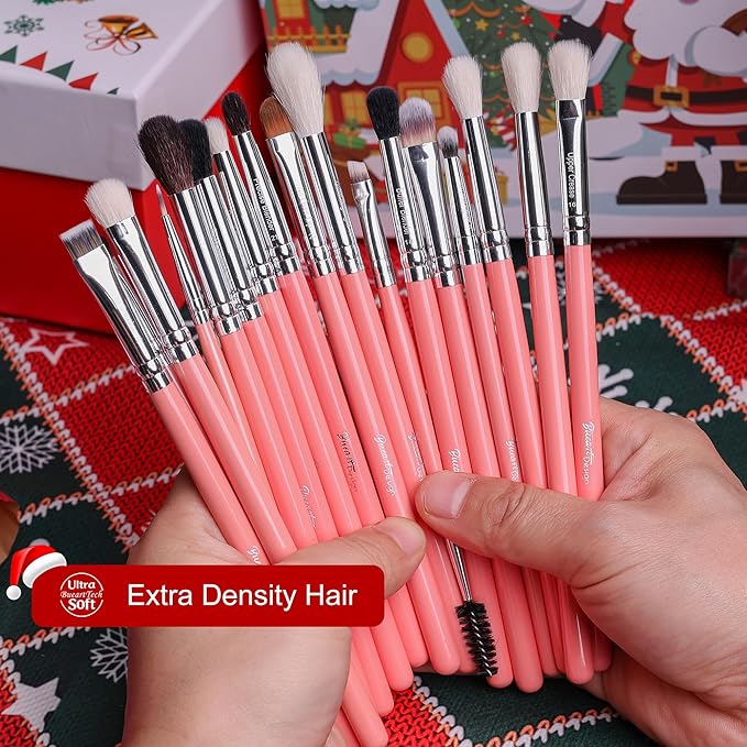 Bueart Design Makeup Brushes Set 26pcs Real Natural Goat Hair Professional labeled Foundation Face Blending Blush Concealers Eyeshadow Brush Set(26Pcs Pearl Pink)
