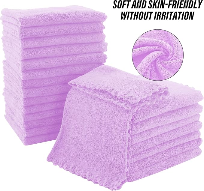 MOONQUEEN Ultra Soft Premium Washcloths Set - 12 x 12 inches - 72 Pack - Quick Drying - Highly Absorbent Coral Velvet Bathroom Wash Clothes (Purple)