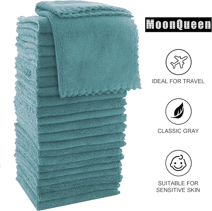 MOONQUEEN Ultra Soft Premium Washcloths Set - 12 x 12 inches - 72 Pack - Quick Drying - Highly Absorbent Coral Velvet Bathroom Wash Clothes (Teal)