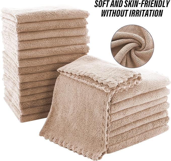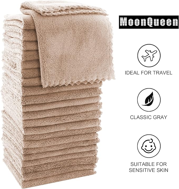 MOONQUEEN Ultra Soft Premium Washcloths Set - 12 x 12 inches - 72 Pack - Quick Drying - Highly Absorbent Coral Velvet Bathroom Wash Clothes (Brown)