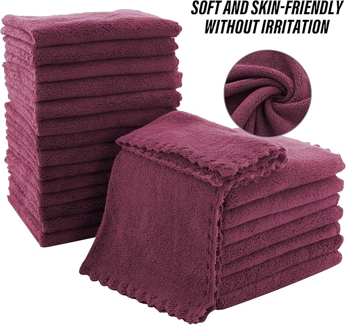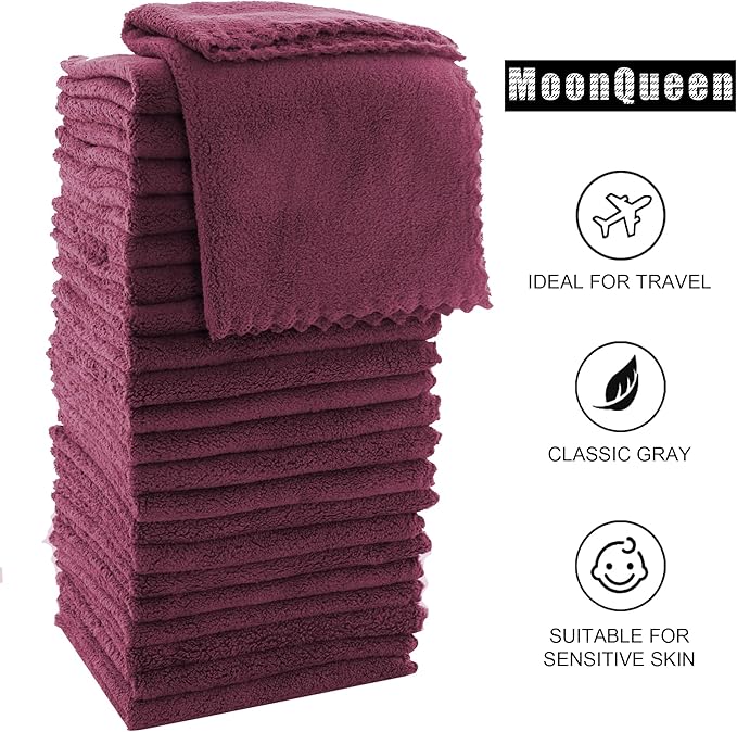 MOONQUEEN Ultra Soft Premium Washcloths Set - 12 x 12 inches - 24 Pack - Quick Drying - Highly Absorbent Coral Velvet Bathroom Wash Clothes - Use as Bath, Spa, Facial, Fingertip Towel (Burgundy)