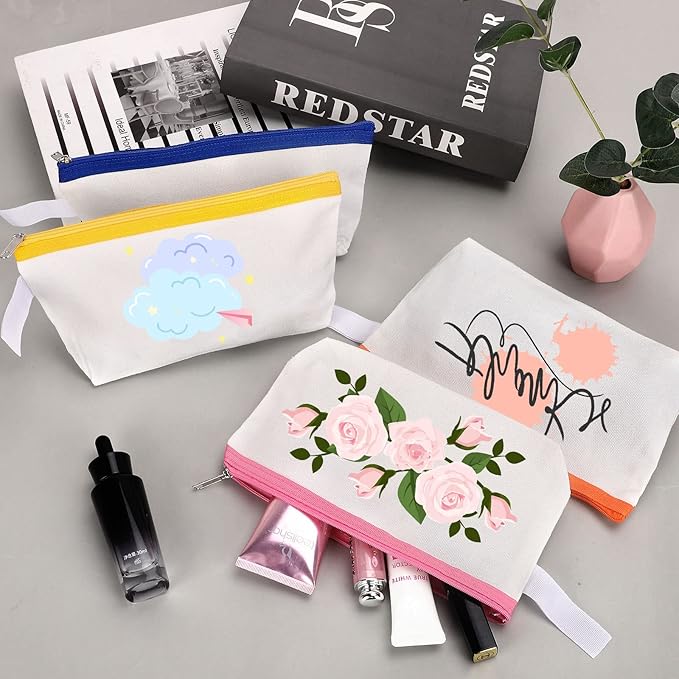 10 Pieces Cotton Canvas Makeup Bag with Bottom and Strap, Multi-Purpose Cosmetic Bag with Zipper Travel Toiletry Pouch, Blank DIY Craft Bag (Multicolor 01, S)