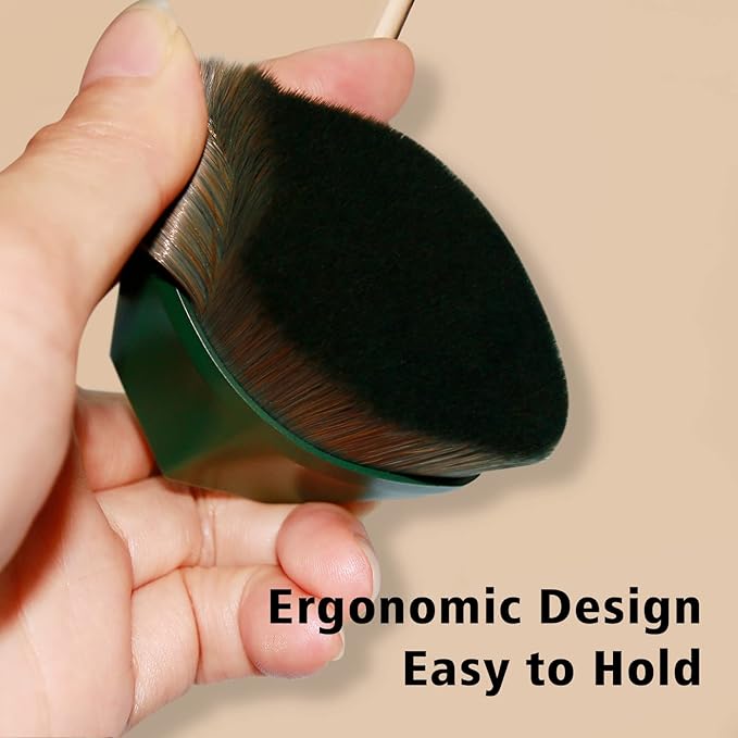 Foundation Makeup Brush Flat Top Kabuki Brush Hexagon Face Blush Liquid Powder Foundation Brush for Blending Liquid, Cream or Flawless Powder Cosmetics with Bonus Protective Case (Green)