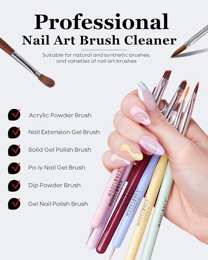 Modelones Nail Art Brush Cleaner & Restorer for Nail Polish/ Extension Gel/Solid Builder Gel/Dip Powder/Acrylic Manicure Kits DIY Salon at Home - 80ml, W/Pro Brush