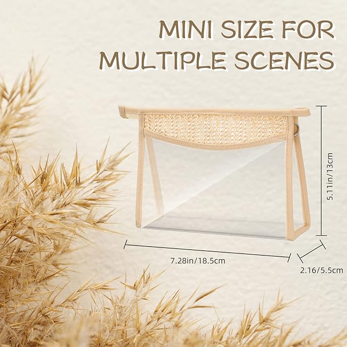- Elegant and Concise: compare with ordinary cosmetic bags, there is woven technology on the top of our clear makeup bags, the overall presentation of Bohemian style, coupled with the collocation woven and the same color of the bag edge design gives a delicate and elegant, simple and generous feeling