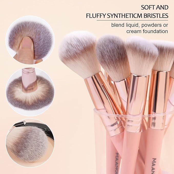 Makeup Brush Set, MAANGE 18 Pcs Premium Synthetic Makeup Brushes Set Soft Foundation Powder Eyeliner Eye Shadow Make up Brushes Professional (Pink)