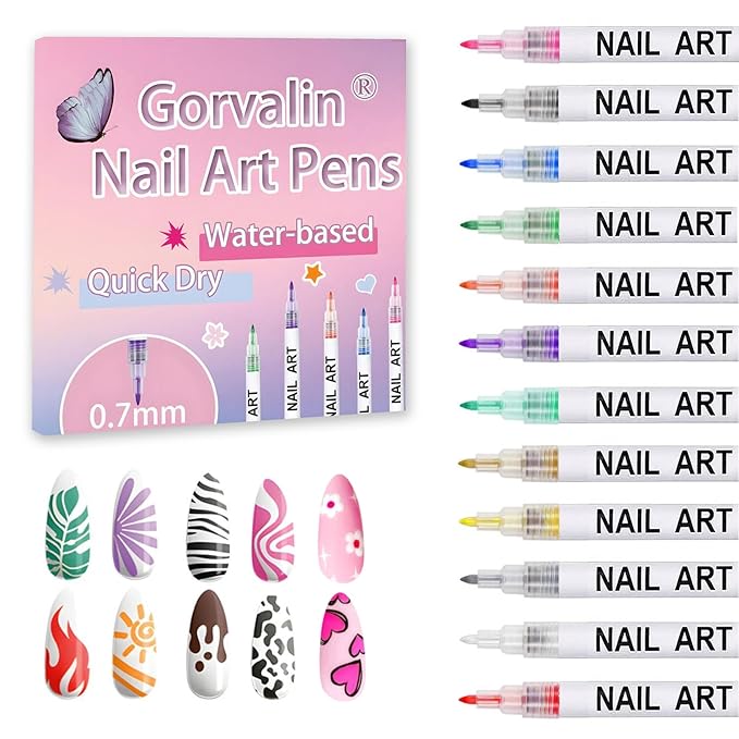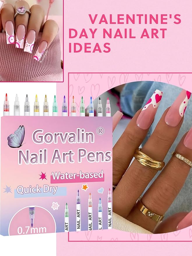 Gorvalin 12 Colors Nail Art Pens, 3D Quick Dry Nail Point Graffiti Dotting Liner Pen Sets Nail Art Painted Pen Drawing Nail Design Kit for Nail DIY Decoration Valentine Gift