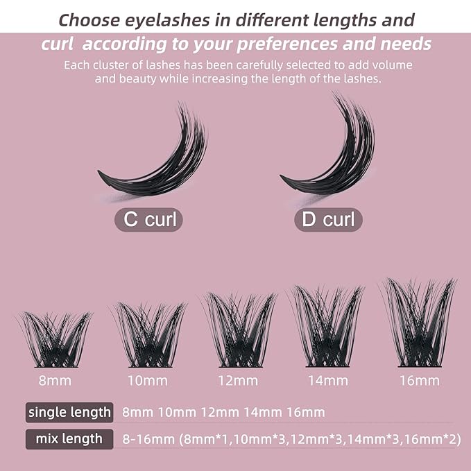 QUEWEL Cluster Lashes 72 Pcs Wide Stem Individual Lashes C/D Curl 8-16mm Length DIY Eyelash Extension False Eyelashes Soft for Personal Makeup Use at Home (honey01-C-14)