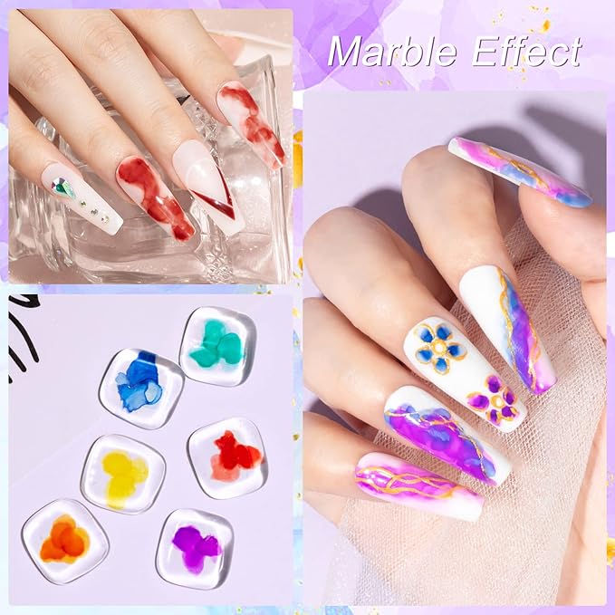 MIZHSE 12PCS Marble Nail Polish, Blooming Gel Marble Ink for Nails Gold Blue Purple Nail Ink Watercolor Magic Blossom Gel Nail Polish for Nail Salon Home DIY
