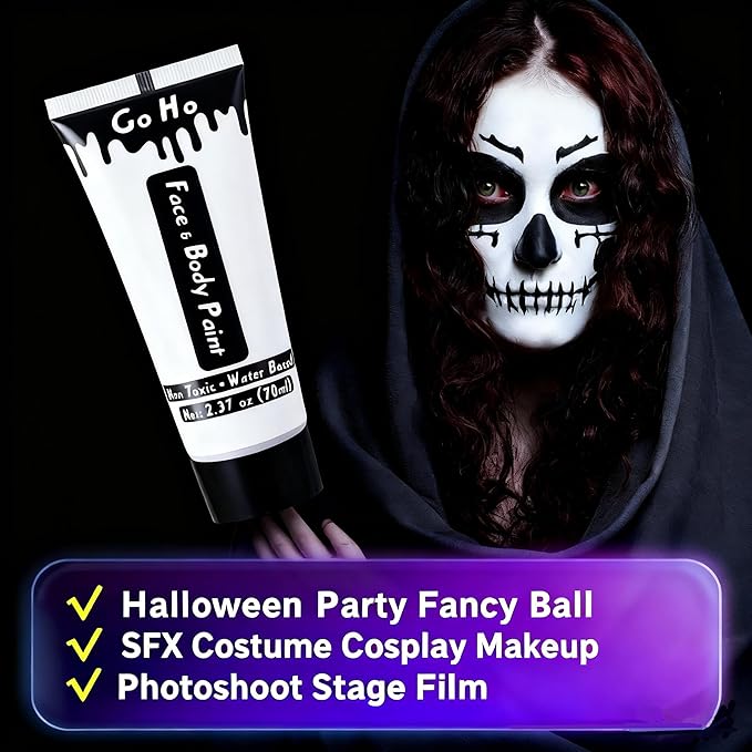 Go Ho Professional Clown White Face Body Paint Washable(2.37oz/pc),Water Based Cream White Body Paint,Halloween Costumes Cosplay SFX Goth Skeleton Zombie Vampire Clown Makeup