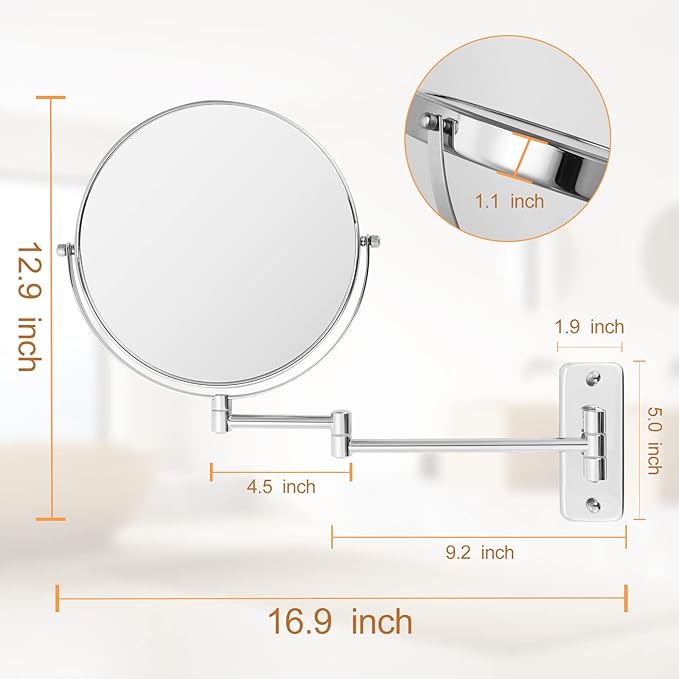 9" Magnifying Wall Mount Makeup Vanity Mirror,1x/7x Double-Side Makeup Mirror with Magnification,Swivel Extendable Shaving Face Mirror for Bathroom, Wall Mirror for Chrome