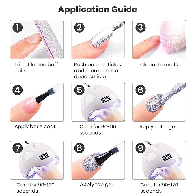 - EASY APPLICATION LONG LASTING: This glitter rainbow gel polish is long lasting for 21+ days with perfect shine under proper application. Highly recommend a minimum of 60 seconds with a LED light and 2 minutes with a UV lamp for each layer