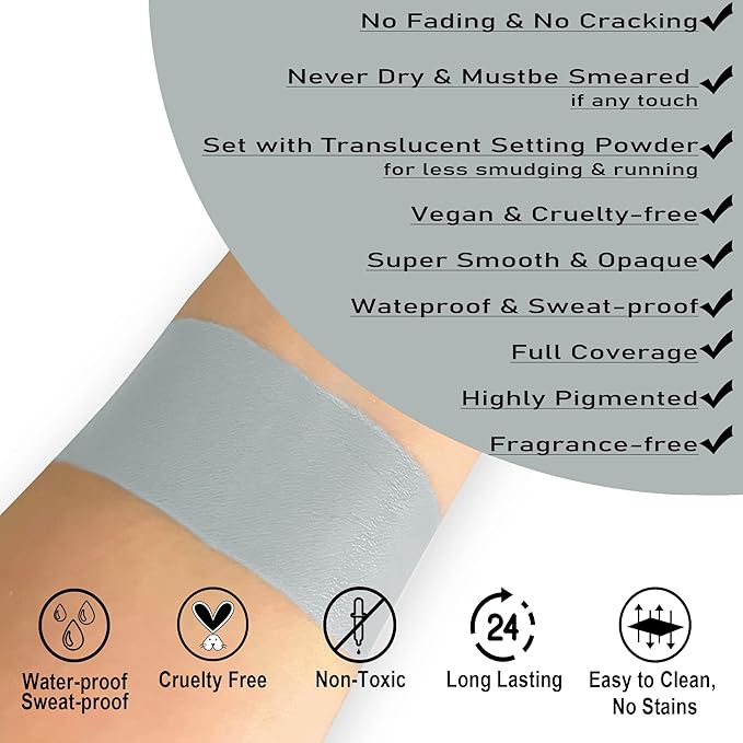 - 💗HIGH PIGMENTED & WATERPROOF - All face paint colors are excellent full coverage with flawless, only takes one pass to fully cover the skin, highly pigment and waterproof, sweat-proof. As with any professional grease cream makeup, it NEVER DRIES OUT completely like water-activated paint. We highly recommend to seal it with translucent powder to make it get long wear and less transferring and smudging, help last hours at a hot convention.