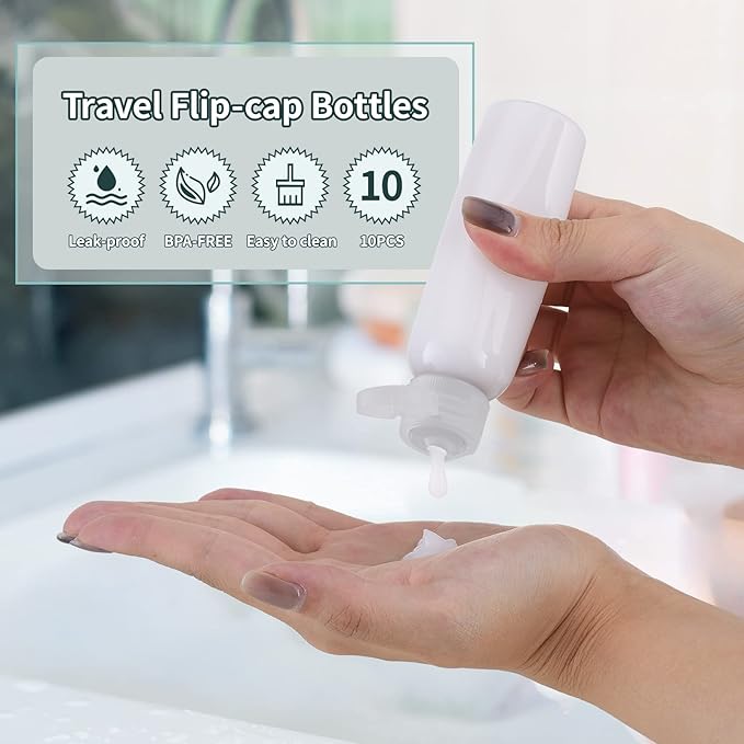 - Sticker&Leak-Proof: For this travel flip top bottle we will send a label that can mark the liquid for quick identification and avoid confusion. The empty container bottle is leak-proof, so there is no need to worry about having any accidental discharged while en route.