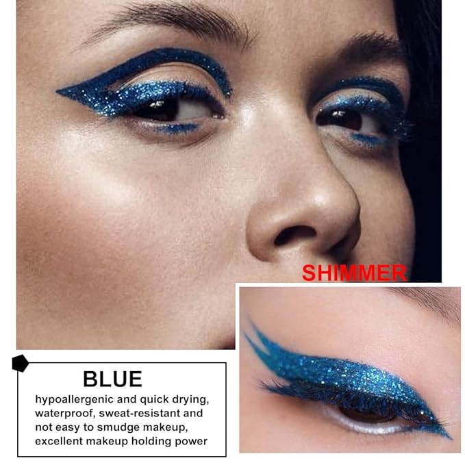 - ❤【2Pcs Sparkling Liquid Eyeliner Set】Sparkling Shimmer Blue & Green, brighten your daily eye look, to help you easily create fashionable makeup,make you the focal point,show the most charming charm of women.It fits lots of occasion such as Halloween, Christmas, cosmetic show, prom night, dance party etc.