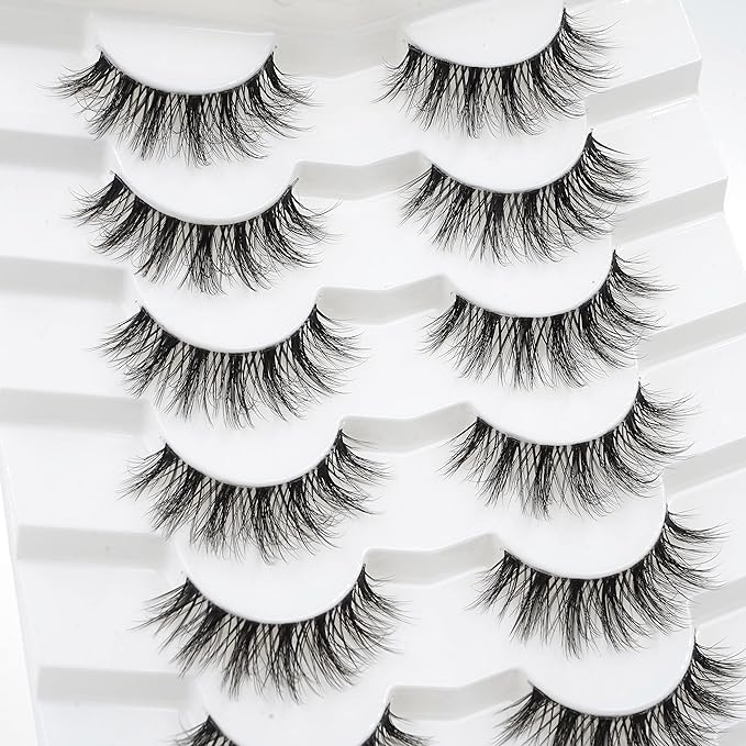 3D Clear Band False EyeLashes C/D Curl Soft Faux Mink Lashes Natural Look Cat Eye Fake lashes Short Russian Strip Lashes 7 Pairs-Happy Heartbeat(No.213)