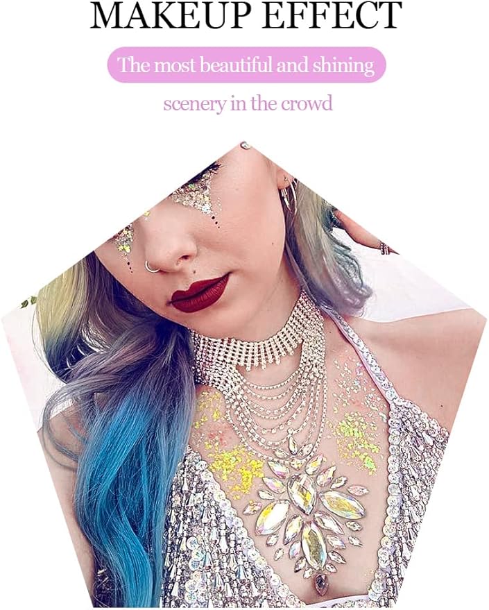 - Wide Applications --- This cosmetic chunky glitters flakes gel perfect for your body from head to toe: face, body, eyeshadow, lips, cheeks, hair, nail art, and more,perfect for rave hair accessories and face glitter rave.On the body, dust some on the collarbones and shoulders for a super shimmering effect