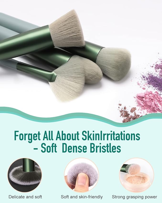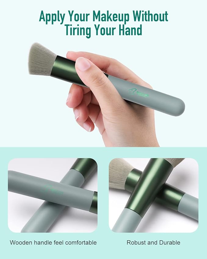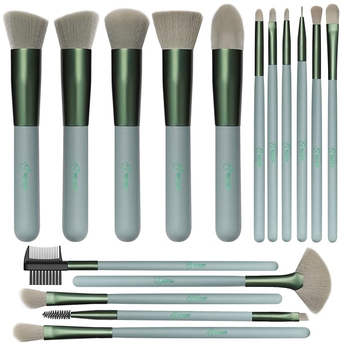 BESTOPE PRO 16 Pcs Makeup Brush Set Makeup Brushes for Eyes and Face, Blending Brush for Foundation, Premium Synthetic Powder Concealers Makeup Brushes, Eye Shadows Brushes, Eyeliner Brushes Green