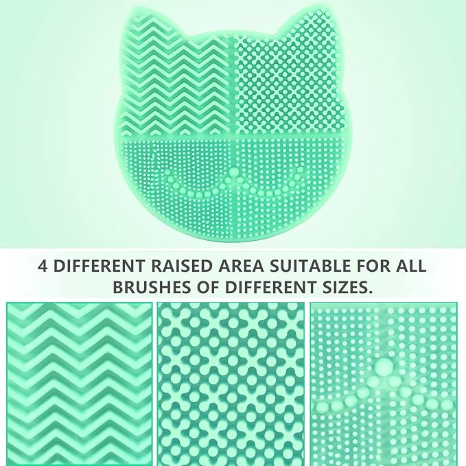 New Grass Green Silicon Makeup Brush Cleaner Mat with Portable Cat Shaped Cosmetic Brush Cleaning Pad Holder and Drying Holder