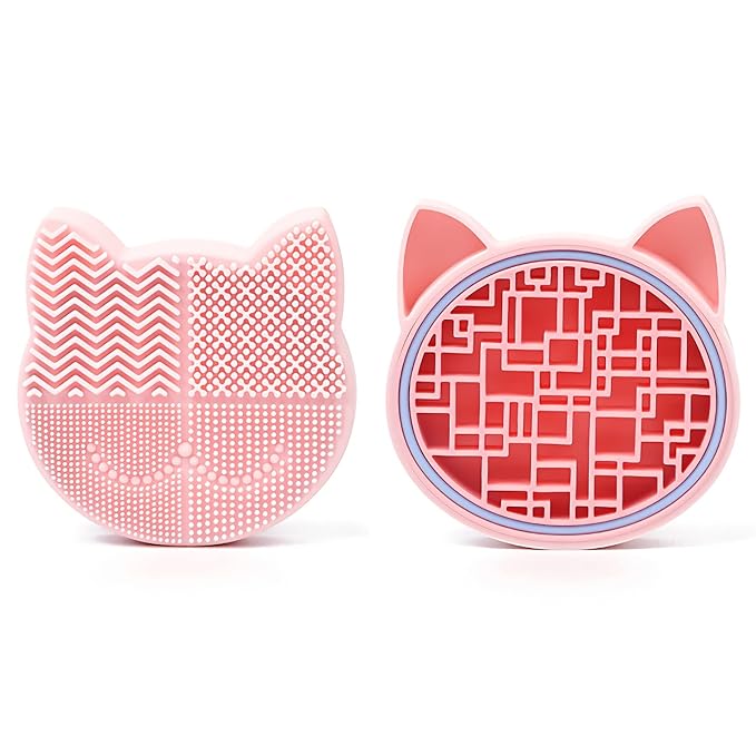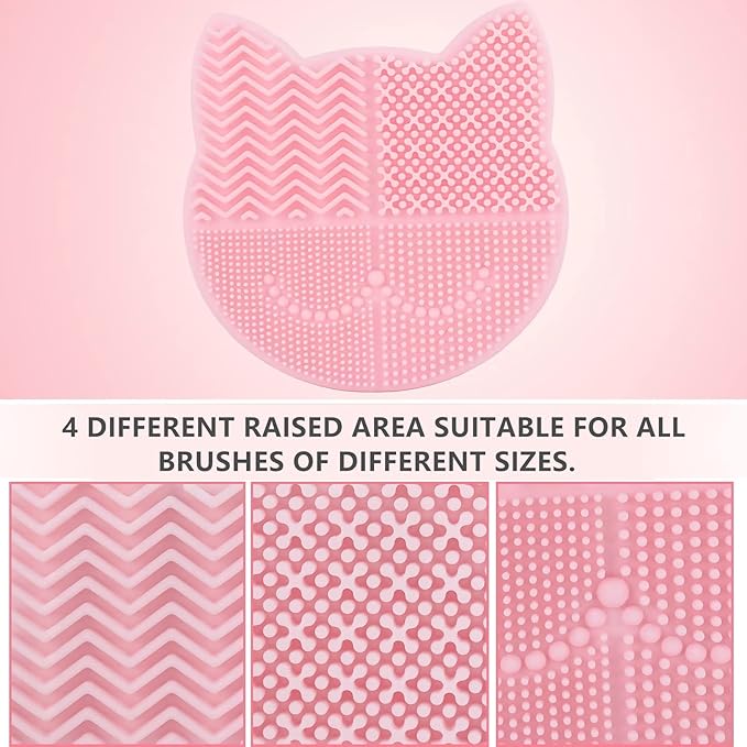 Silicon Makeup Brush Cleaner Mat with Portable Cat Shaped Cosmetic Brush Cleaner Pad - Pink