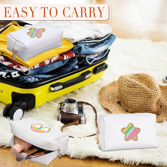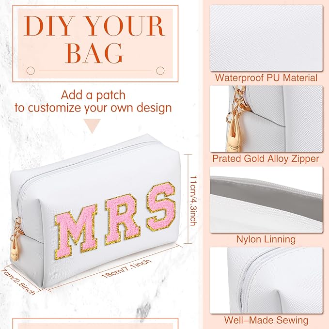 - Waterproof and Easy to Clean: preppy makeup bag is made of PU leather, which is waterproof, light and soft to avoid the inside things getting wet; Besides, you do not need to worry about it getting dirty, which is easy to clean; Just wipe the stain with a damp cloth; The leather toiletry bag is blank, does not contain letter patches; The patches in the pictures mainly show that the product can be DIY by yourself