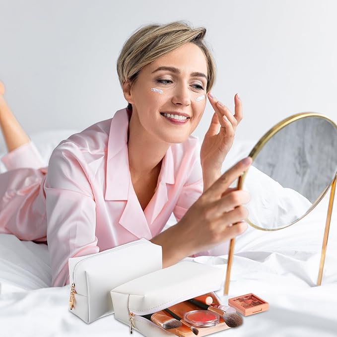 Sanwuta 9 Pcs Makeup Bags Bulk PU Double Zippers Cosmetic Bag Makeup Toiletry Pouch Portable Travel Organizers Case for Women Bachelorette Party End of The Year Bridesmaid Gift(White)
