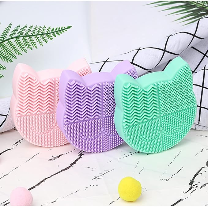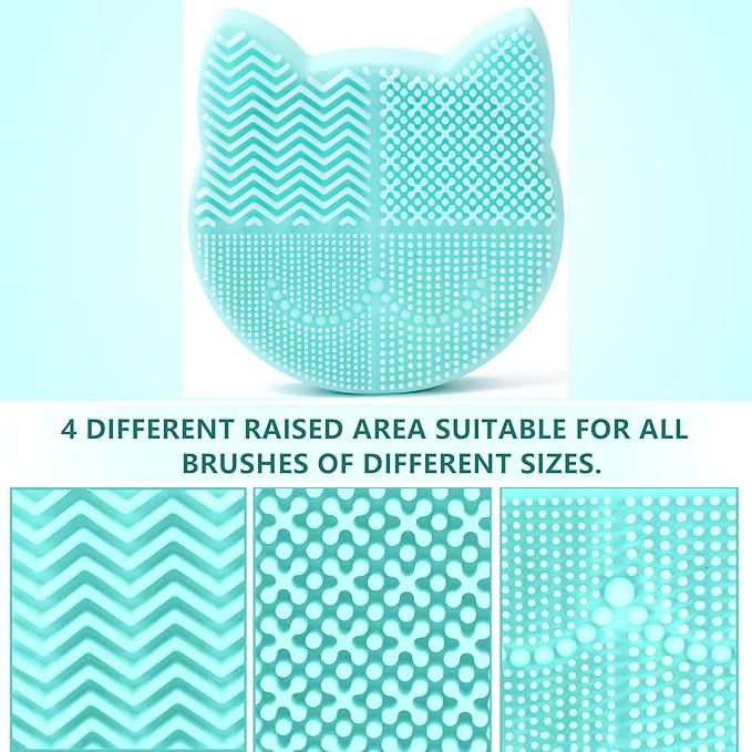 Silicon Makeup Brush Cleaner Mat with Portable Cat Shaped Cosmetic Brush Cleaning Pad Holder - Light Green