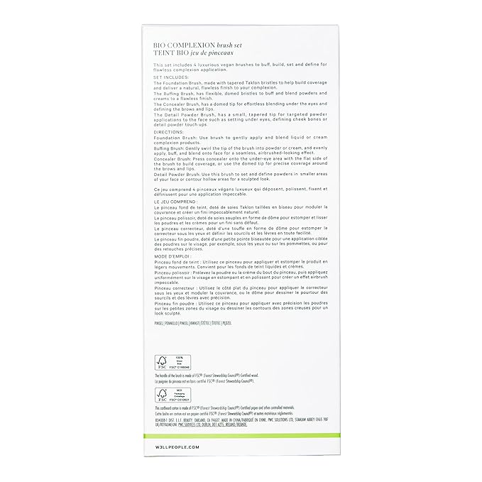 Well People Bio Complexion Brush Set, 4-Piece Face Brush Set For All Complexion Products, For Liquids, Powders & Creams, Cruelty-free Bristles